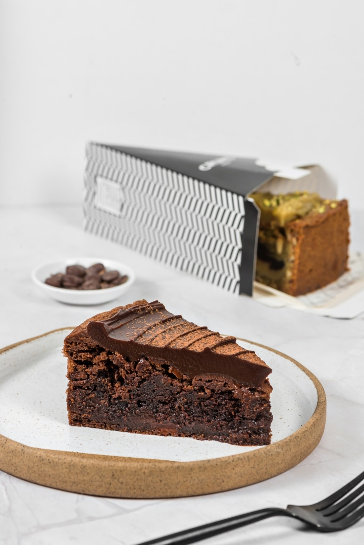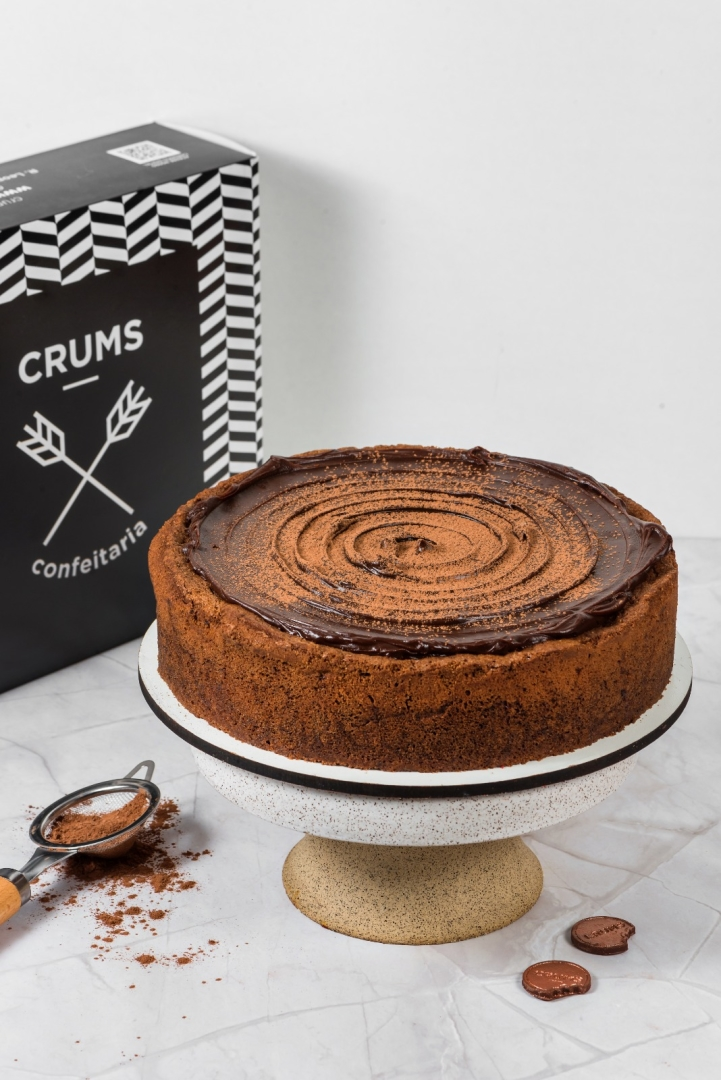 Bolo 100% cacau, recheio cremoso de avelã, camadas generosas de ganache e a crocância inconfundível do Ferrero Rocher, finalizada com um toque de crumble de cacau e avelã.