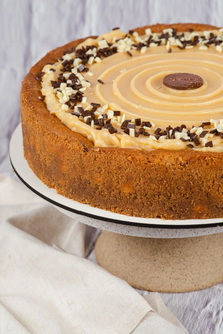 Bolo 100% cacau, recheio cremoso de avelã, camadas generosas de ganache e a crocância inconfundível do Ferrero Rocher, finalizada com um toque de crumble de cacau e avelã.