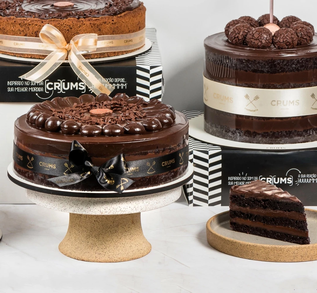 Base de Cookie com gotas de chocolate meio amargo, recheio de brigadeiro meio amargo e pedaços de brownie